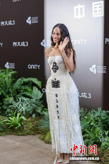 12月8日,影戏《阿凡是达3》中原尾映礼正在海北3亚举办。图为影戏《阿凡是达3》女配角饰演者佐伊·索我达娜明相典礼现场。中新社记者 骆云飞 摄
